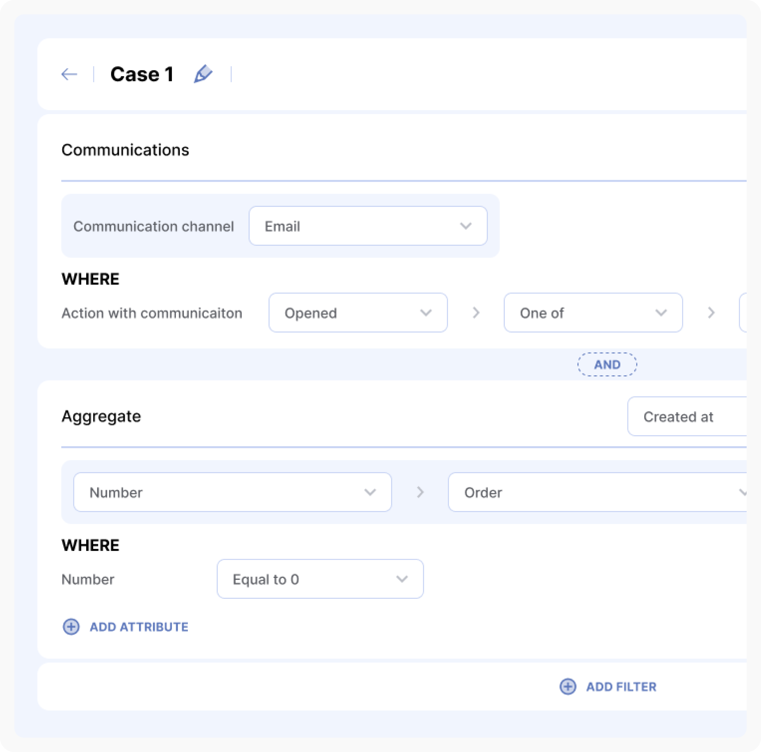 Variety of available filters, attributes and aggregates to create specific customer segments